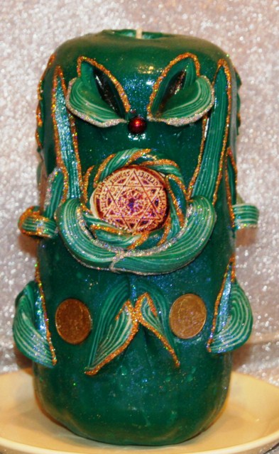 Stosuję do tego typu zestawów ”świece babilońskie” wykonywane przeze mnie osobiście z mieszaniny parafiny , odpowiednich ziół i wosku pszczelego (żeby podnieść jej wibracje).